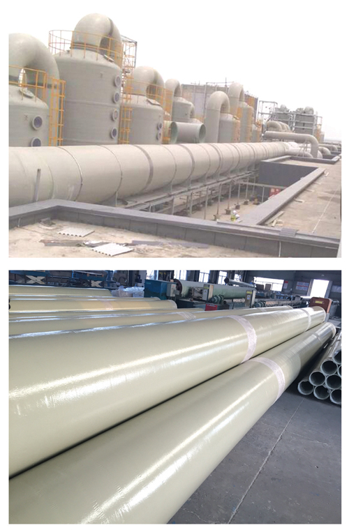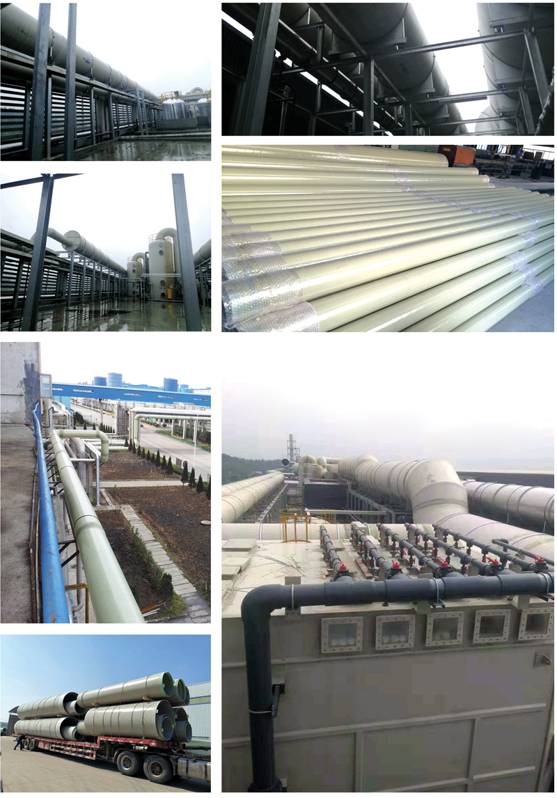 耐候性优良:室外管线可制作胶衣或PU涂层,抗紫外线老化。 耐腐蚀性:可根据工况需求选用相应的树脂,满足其腐蚀性要求。抗静电性:通过添加石墨或者采用碳纤维毡,满足有防爆要求的易燃易爆气体收集。 阻燃性:采用阻燃树脂,可制作氧指数28-32的管材,满足阻燃要求。 耐高温:选用耐高温树脂,满足管道输送高温气体的要求(可高达200℃)。 产品规格: 直径:DN25-DN4200 执行标准: GB50243 通风与空调工程施工质量验收规范 应用领域: 化工废气收集 污水厂除臭收集 电子厂制程排气管道等各种工况废气收集 |